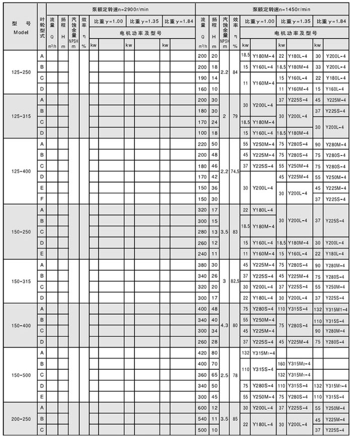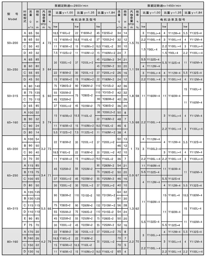 六、CZ型化工泵性能參數表